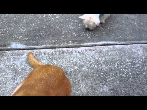 Coconut is eating well and enjoying walks. Poor little guy has a hard time getting petting because Leo just won't allow it.
